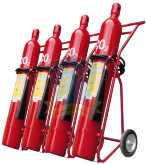 Bình chữa cháy dạng khí CO2, loại xe đầy, bình bằng thép, chữa các đám cháy trong nhà xưởng, rộng, tầng hầm, kín khí, có các loại 3kg, 5kg, 24kg